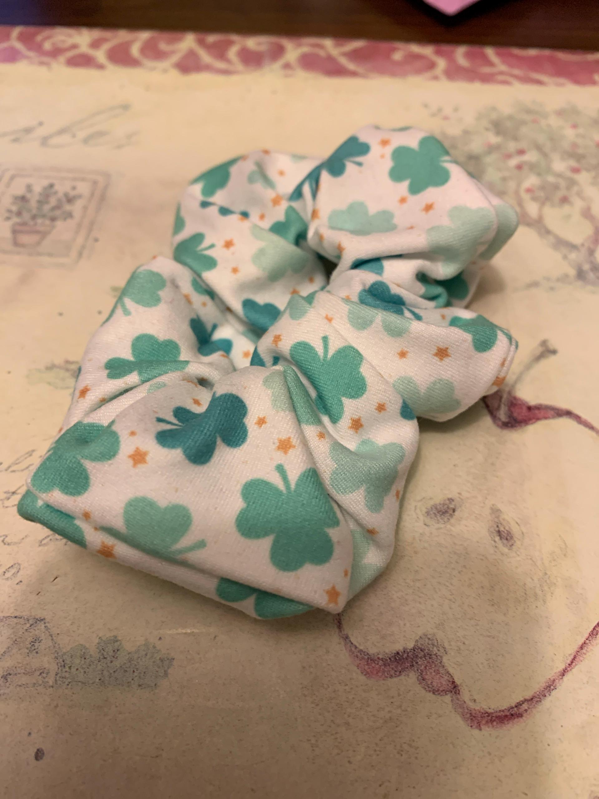 Shamrocks & stars Scrunchies, Bunny Ear Scrunchie, St Patrick's Day Scrunchie, Soft Scrunchie, Brynnbands, Fabric Hair Tie